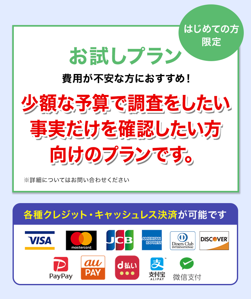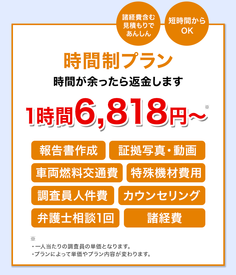浮気調査に対して「いくらかかるかわからない」「後から高額請求されるのでは」という不安を持つ方は少なくありません。当探偵社では、お話をきちんとお伺いしたうえで、事前に調査内容・費用を明確にご説明。ご状況に合わない調査は提案しません追加費用が発生する調査は行いません。あなたの目的に必要な分だけ、無駄のない調査をご提案します。